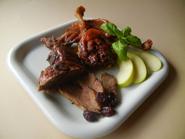 Bardzo smaczny sposob na kaczke . Wspanial sie prezentuje na talarzach. Ja kaczke podzielilam tym razem i z czesci rosolowych ugotowalam pyszny rosol.