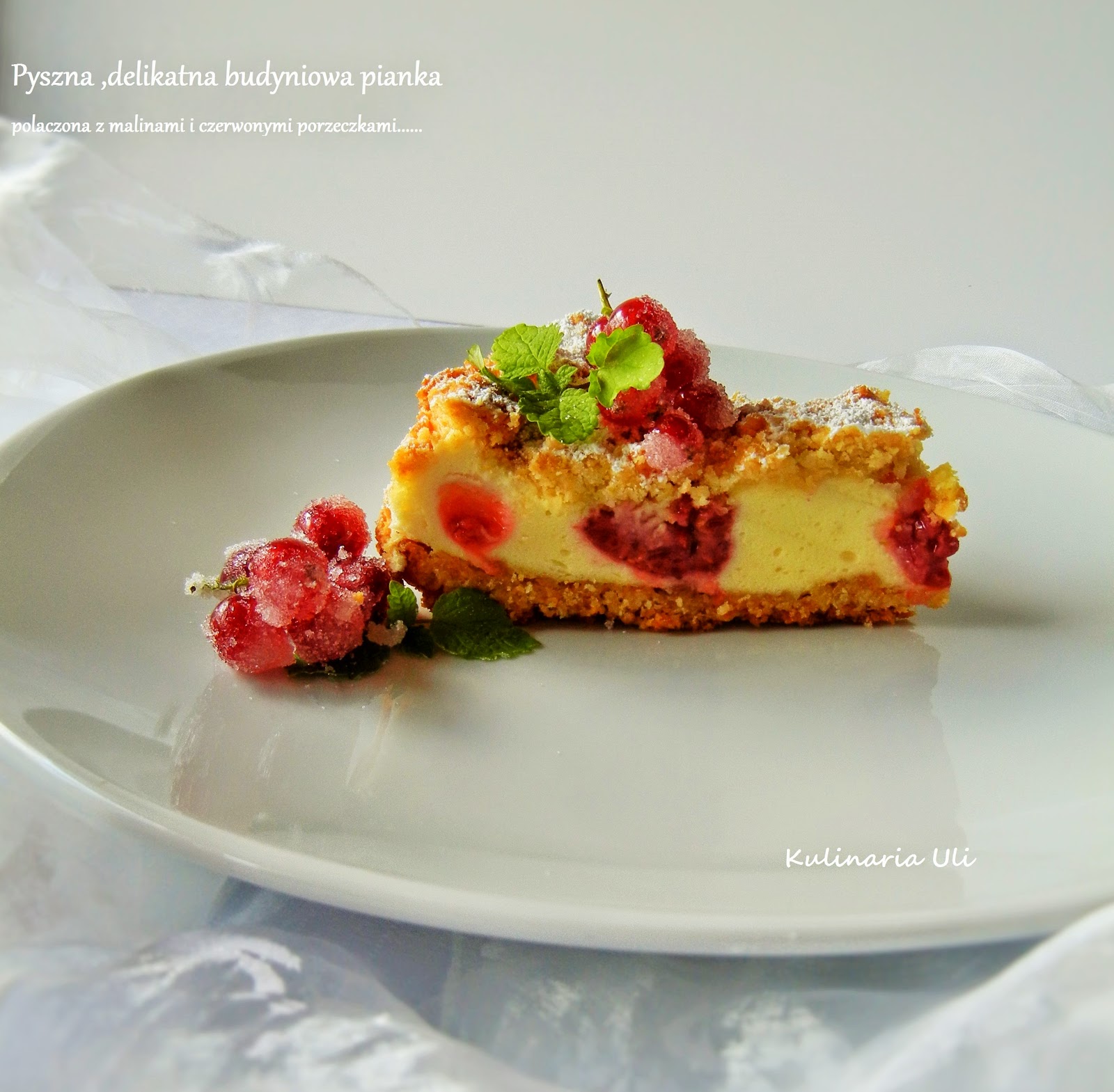 Kruche ciasto z owocami i budyniowa pianka