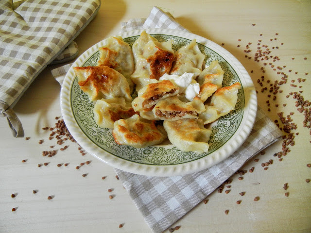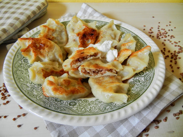 Pierogi z kasza gryczana i twarogiem ...od bardzo ,bardzo dawna slyszalam o tym farszu ,no i w koncu postanowilam wyprobowac:). Efekt ...pierogi sa dobre ,lepsze po lekkim pobycie na patelni ,ale jak dla mojej rodzinny nie bardzo przypadly do gustu ,chociaz znikly co do ostaniej sztuki ;)-od dzieci uslyszalam ze najlepsze to sa te pierogi "a´la kartofle " czyli tradycyjne ruskie  . Mi smakowaly ,ale ja lubie takie polaczenia :). Zapraszam do wyprobowania przepisu i do tego zebyscie sie przekonali sami :)