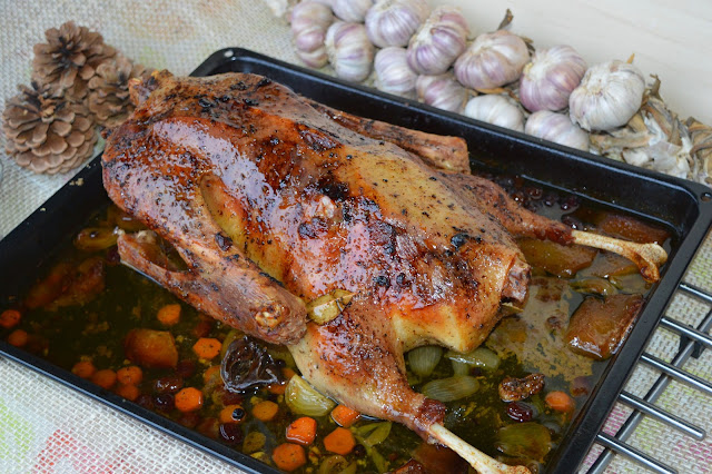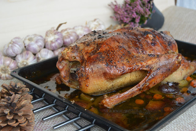 W tym roku przywiozlam sobie szesc gesi z Polski ;) . Oto pierwsza z nich , rumiana ,aromatyczna i pyszna :)