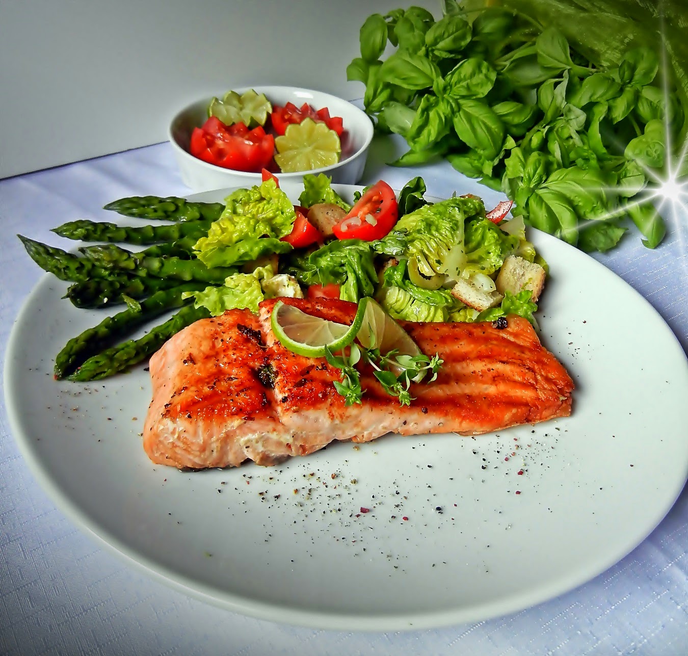 - Rozgrzewamy grilla ,smarujemy delikatnie olejem. Łosoś kladziemy na grillu od strony skory i grillujemy okolo 6 minut . Odwracamy na druga strone i grilujemy okolo 4 min. w zaleznosci od grubosci kawalkow.