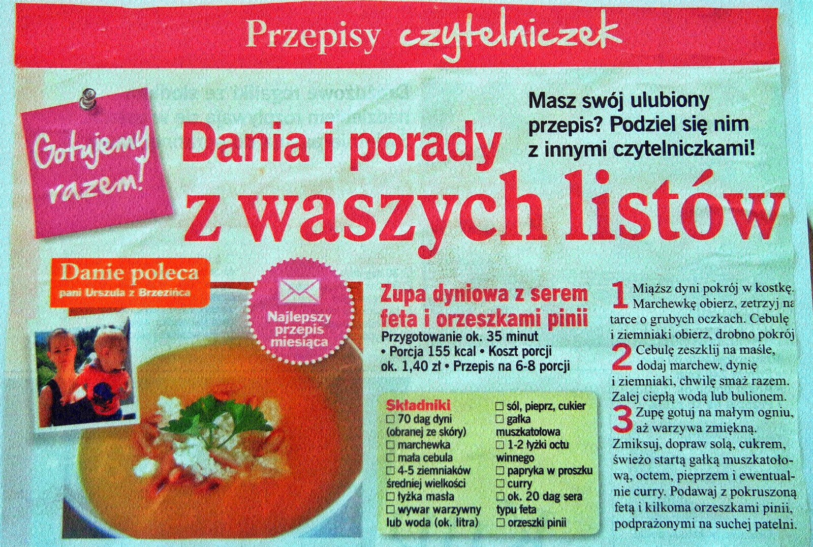 Moj przepis zostal opublikowany w trzech gazetach :).