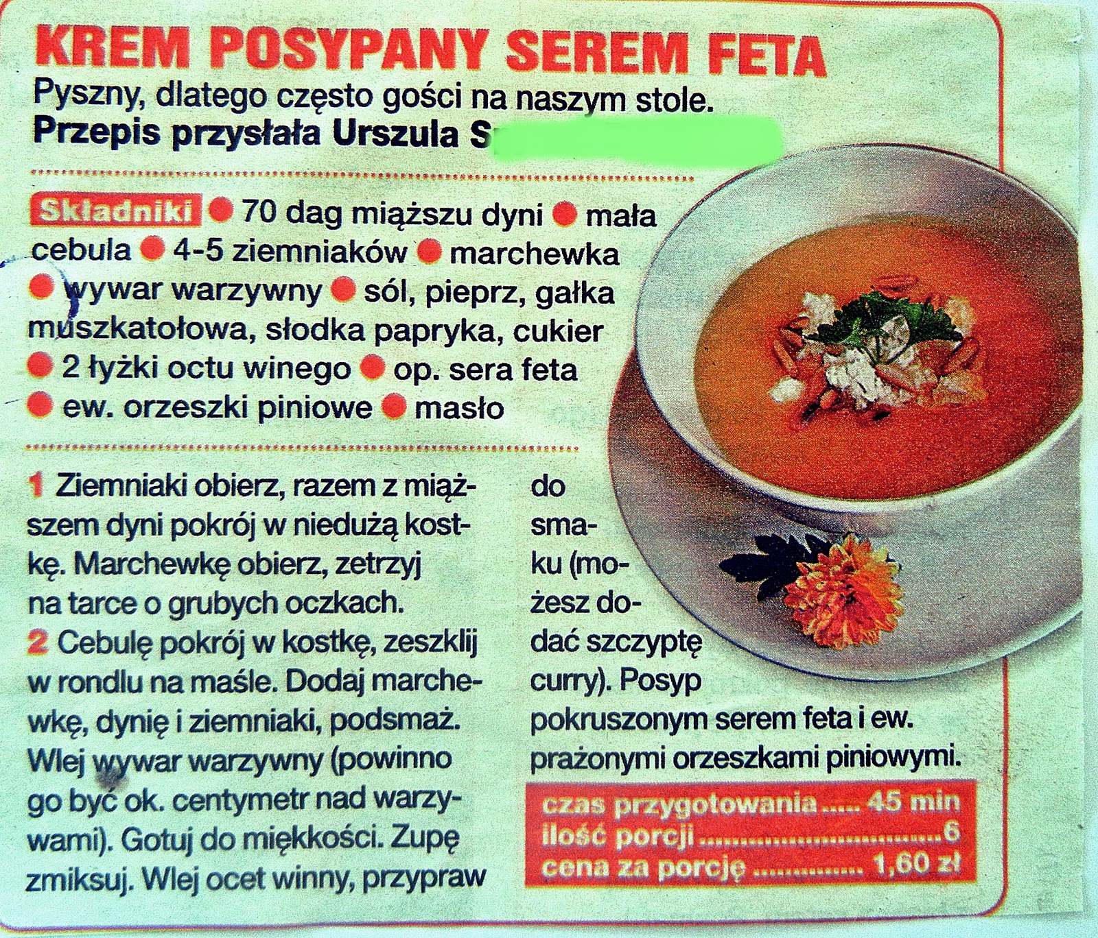 Bardzo smaczna zupa . Ser fetta dodaje tej zupie ,to cos ;)...