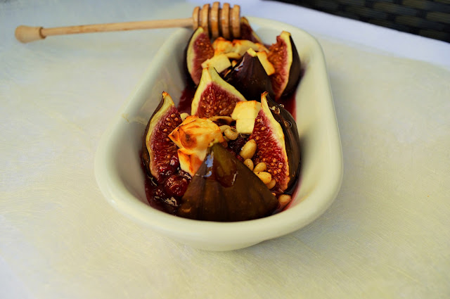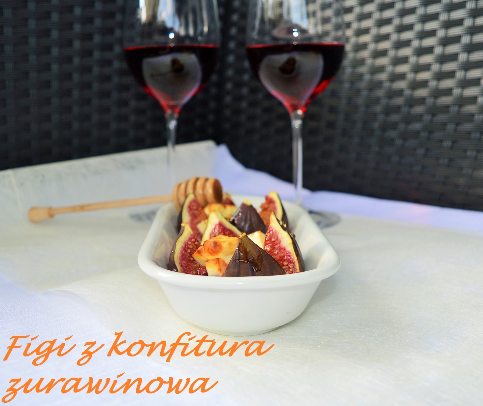 Figi z konfitura zurawinowa,serem fetta i orzeszkami pini